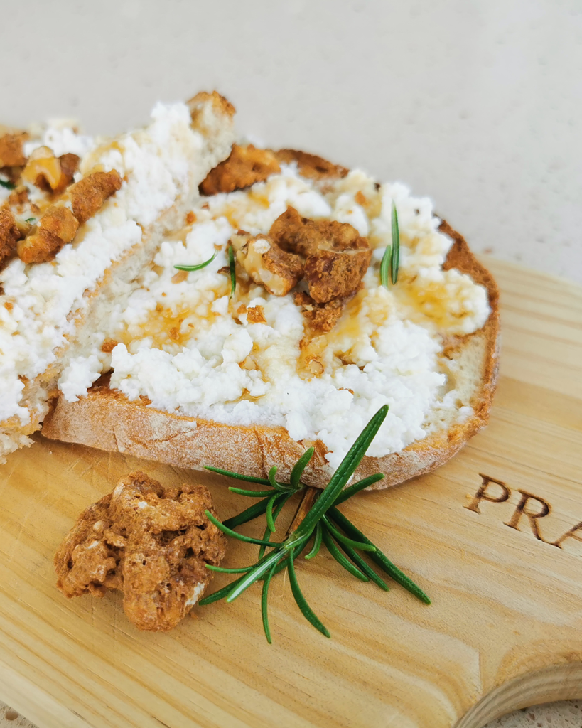 Torradas com requeijão, mel e nozes: Uma deliciosa harmonia entre o cremoso requeijão, o doce mel e as crocantes nozes, servida sobre torradas frescas.